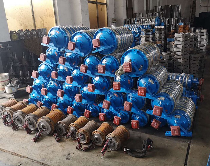 防爆電動滾筒是供各種固定式帶式輸送機(jī)、斗式提升機(jī)、卷揚(yáng)機(jī)等配套的新型驅(qū)動裝置。其內(nèi)部采用行星擺線減速機(jī)結(jié)構(gòu),使電機(jī)外露與滾筒直聯(lián),具有承載能力大,過載能力強(qiáng),傳動平穩(wěn),噪聲低,壽命長,使用維修方便,操作安全可靠等優(yōu)點(diǎn)??蓾M足各種逆止,包膠等要求。