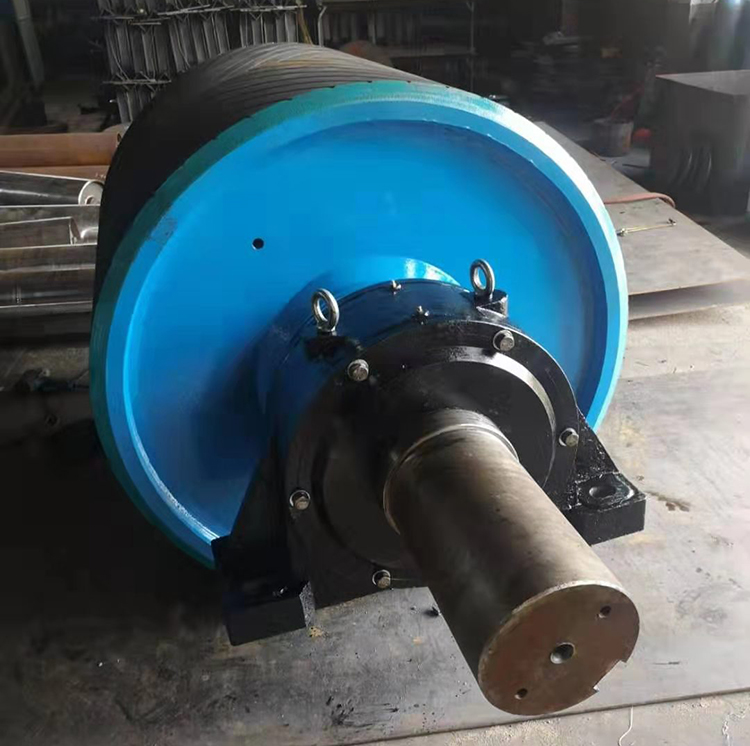 驅(qū)動滾筒表面有裸露光鋼面,人字形和菱形花紋橡膠覆面。小功率、小帶寬及環(huán)境干燥時可采用裸露光鋼面。人字形花紋膠面摩擦系數(shù)大,防滑性和排水性好,但有方向性。菱形膠面用于雙向運(yùn)行的輸送機(jī)。