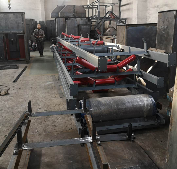 皮帶機(jī)是帶式輸送機(jī)的簡(jiǎn)稱,有固定式和移動(dòng)式,結(jié)構(gòu)簡(jiǎn)單,效率高。以撓性輸送帶作物料承載和牽引構(gòu)件的連續(xù)輸送機(jī)械。一條無(wú)端的輸送帶環(huán)繞驅(qū)動(dòng)滾筒和改向滾筒。兩滾筒之間的上下分支各以若干托輥支承。物料置于上分支上,利用驅(qū)動(dòng)滾筒與帶之間的摩擦力曳引輸送帶和物料運(yùn)行。適用于水平和傾斜方向輸送散粒物料和成件物品,也可用于進(jìn)行一定工藝操作的流水作業(yè)線。結(jié)構(gòu)簡(jiǎn)單,工作平穩(wěn)可靠,對(duì)物料適應(yīng)性強(qiáng),輸送能力較大,功耗小,應(yīng)用廣泛。